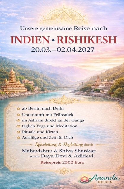 20.03.-02.04.2027 – Rishikesh Yoga Retreat mit Daya Devi, Adidevi, Mahavishnu und Shiva Shankar